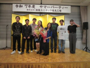 福島地区 サマーパーティー お知らせ 2025/08/18 2025年8月8日(金) 今年度も福島工場のサマーパーティーが開催されました。 従業員とそのご家族、実習生などたくさんの方が参加してくださり 大盛り上がりの結果となりました!! 運営スタッフの皆様は事前準備から当日運営までお疲れ様でした。